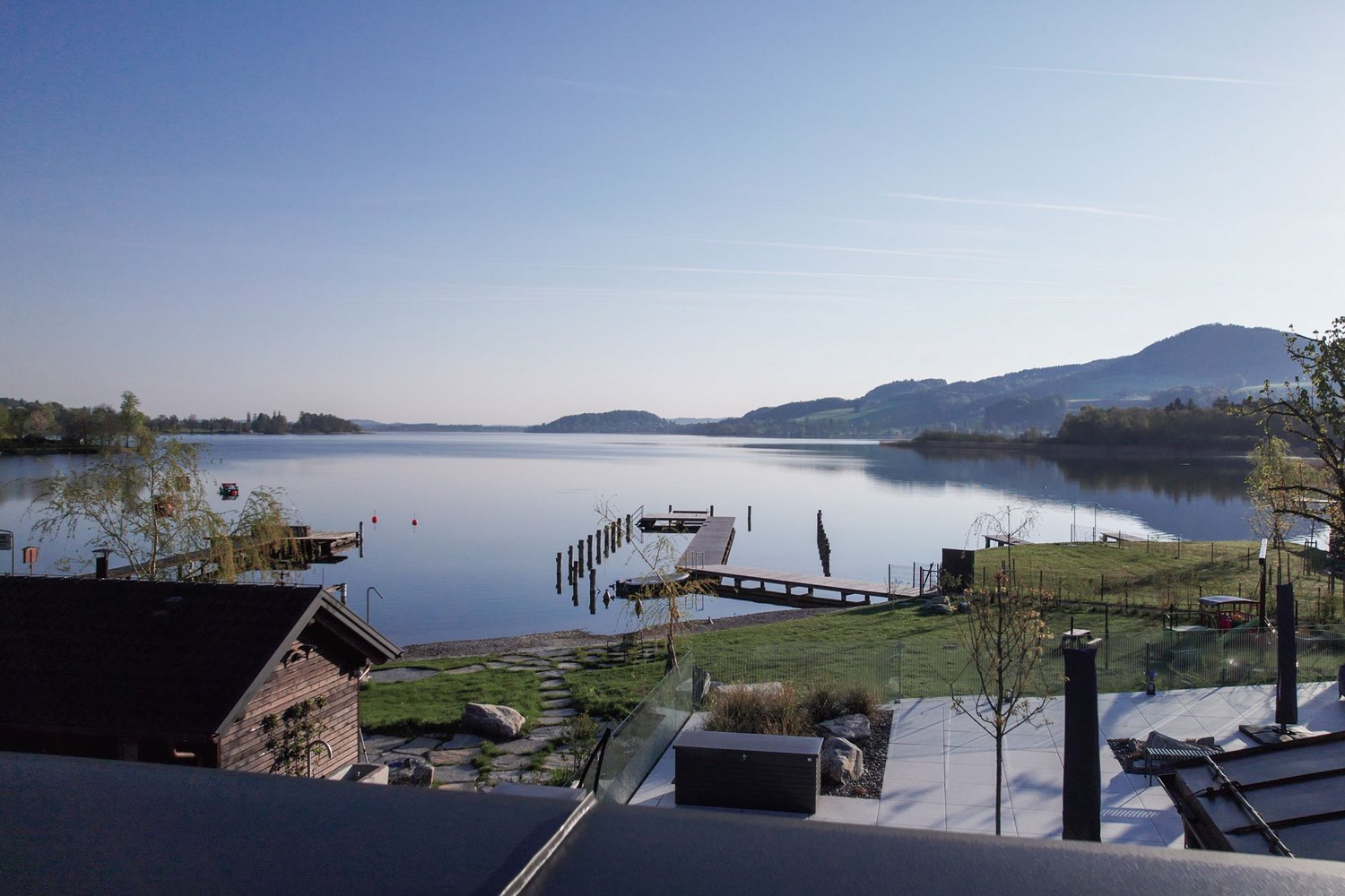 Terrassen: Tür auf und draußen leben – die Terrassen der Seevilla erweitern ganzjährig Ihren Lebensraum und bringen Sie dem See noch ein Stück näher. Ein gutes Buch, der Sundowner mit Freunden oder einfach entspannen: Sie werden jeden Moment genießen.