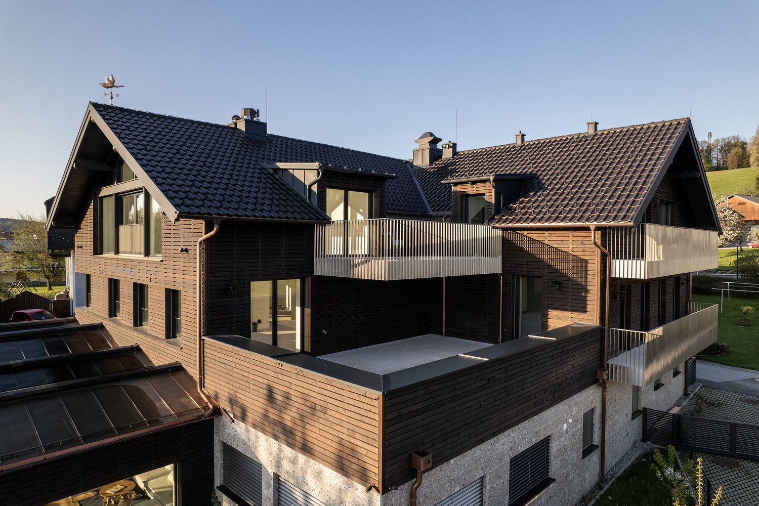 Beschattung: Sie macht die Terrassen zu vollwertigen Wohnräumen, gleichzeitig wird das Aufheizen der Innenräume reduziert. Die innovativen Systeme werden elektrisch bedient und Windsensoren sorgen dafür, dass sie bei entsprechender Wetterlage selbsttätig zurückfahren.