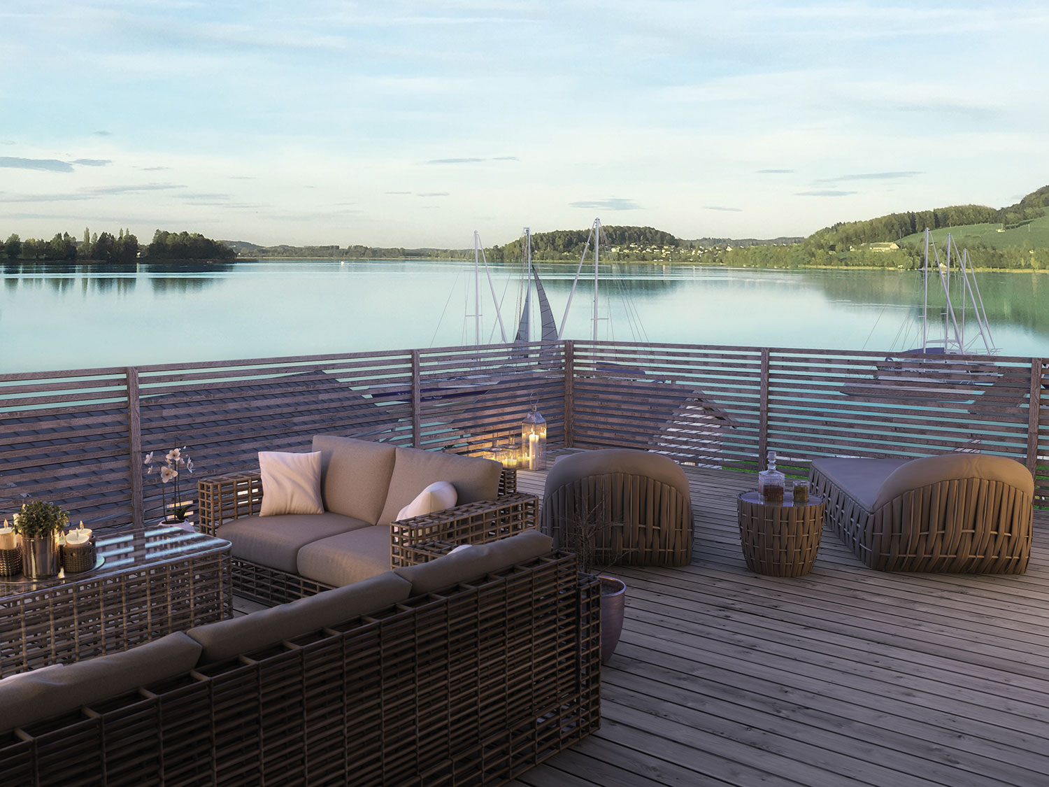 Terrassen: Tür auf und draußen leben – die Terrassen der Seevilla erweitern ganzjährig Ihren Lebensraum und bringen Sie dem See noch ein ...